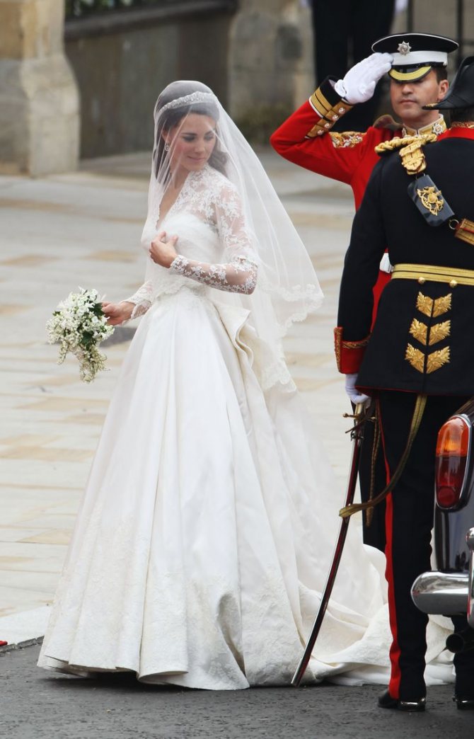 Платье Кэтрин не было украшено бриллиантами или другими драгоценными камнями, но кружевные рукава, цветочные орнаменты, изящный корсет, расклёшенная юбка и длинный шлейф затмили бы своей элегантной красотой любые драгоценные украшения, которые Кейт Миддлтон могла бы включить в свой наряд.